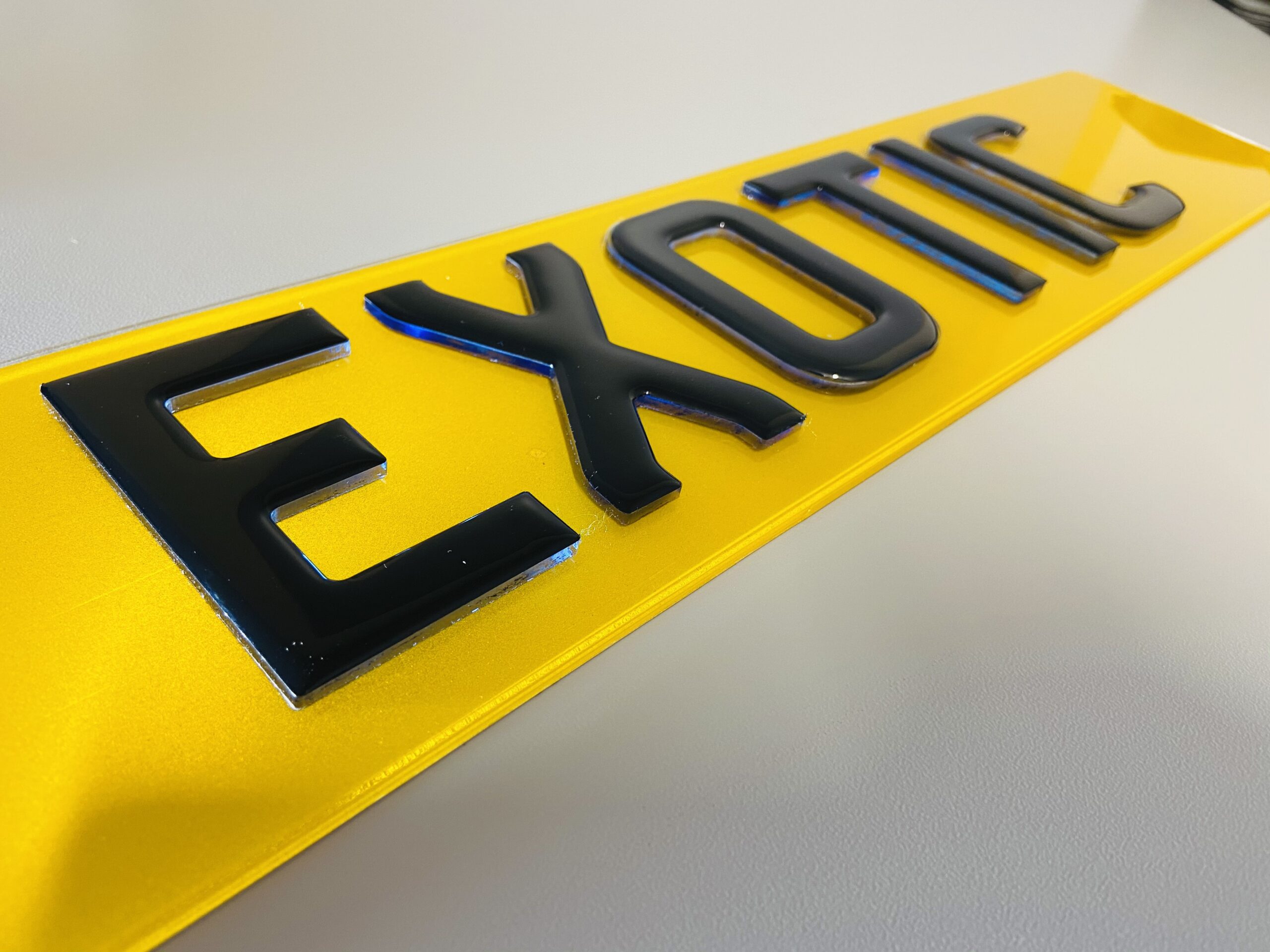 Set of premium 4D gel black neon blue replacement number plates laser cut to perfection. Manufactured using cutting edge laser technology in house, these are the latest bespoke number plates currently on trend. All characters have been designed to match the current Charles wright font. We use the highest quality letters and digits by using 3mm acrylic characters topped in jet black acrylic. As per the legality all of our plates are complaint with the DVLA standards ensuring they are MOT complaint with each plate marked with Easy Number Plates details and British Standards (BS AU 145d) markings.
