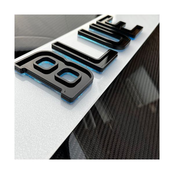 Set of premium 4D Gloss Black GHOST Blue Outline number plates laser cut to perfection. Manufactured using cutting edge laser technology in house, these are the latest bespoke number plates currently on trend. All characters have been designed to match the current Charles wright font. We use the highest quality letters and digits by using 5mm gloss black acrylic.  As per the legality all of our plates are complaint with the DVLA standards ensuring they are MOT complaint with each plate marked with Easy Number Plates details and British Standards (BS AU 145e) markings.