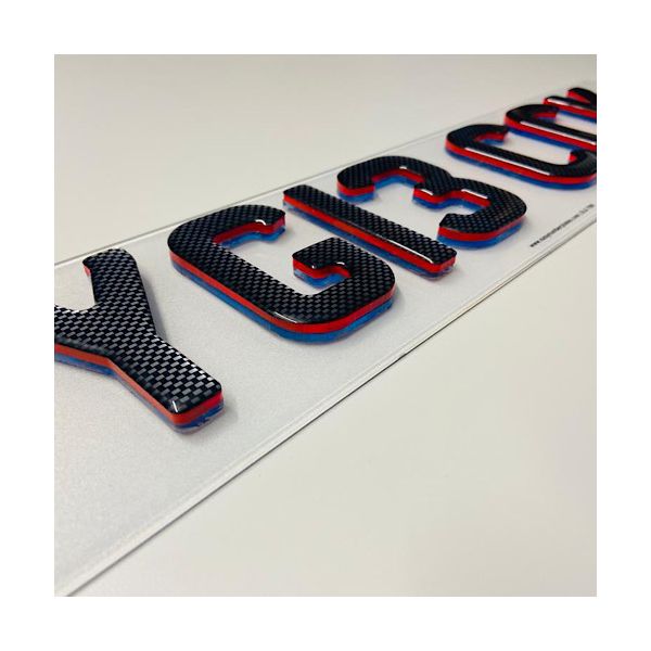 Set of premium 4D Glitter Gel Black M-Sport Neon Edition 5MM Replacement Number Plates laser cut to perfection. Manufactured using cutting edge laser technology in house, these are the latest bespoke show number plates currently on trend. All characters have been designed to match the current Charles Wright font with colours resembling the BMW M-Sport logo. We use the highest quality letters and digits by using 3mm acrylic characters topped in jet black acrylic. As per the legality, all of our plates with 100% black characters are compliant with the DVLA standards ensuring they are MOT complaint with each plate marked with Easy Number Plates details and British Standards (BS AU 145e) markings.