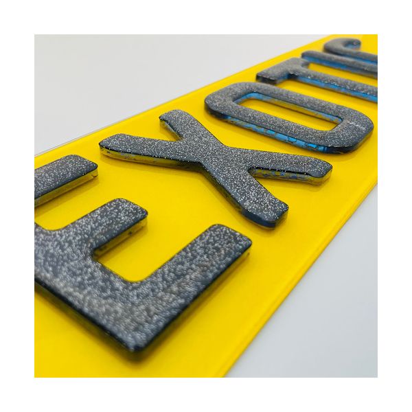 Set of premium 4D Glitter Gel Blue Replacement Number Plates laser cut to perfection. Manufactured using cutting edge laser technology in house, these are the latest bespoke number plates currently on trend. All characters have been designed to match the current Charles wright font. We use the highest quality letters and digits by using 3mm acrylic characters topped in jet black acrylic. As per the legality all of our plates are complaint with the DVLA standards ensuring they are MOT complaint with each plate marked with Easy Number Plates details and British Standards (BS AU 145d) markings.
