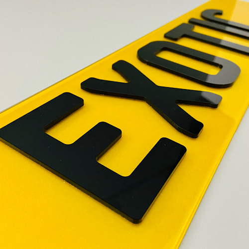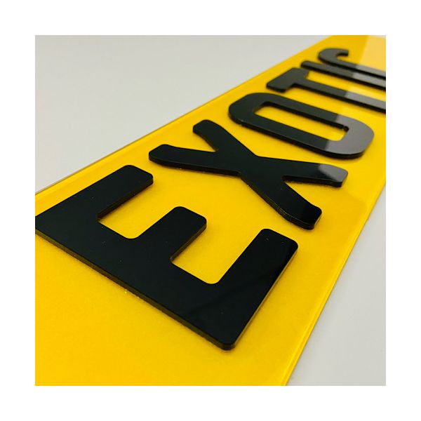 Set of premium 4D Gloss Black number plates laser cut to perfection. Manufactured using cutting edge laser technology in house, these are the latest bespoke number plates currently on trend. All characters have been designed to match the current Charles wright font. We use the highest quality letters and digits by using 3mm gloss black acrylic characters.  As per the legality all of our plates are complaint with the DVLA standards ensuring they are MOT complaint with each plate marked with Easy Number Plates details and British Standards (BS AU 145e) markings.