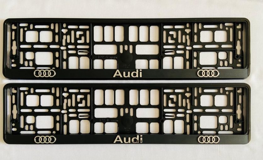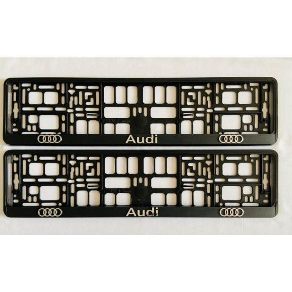 Set of Audi number plate holders x2. 3D embossed finished in premium silver foil. Give your number plates that sharper look. suitable for A1, A3, A4, A5, A6, A7, A8, Q3, Q5, Q7, R8