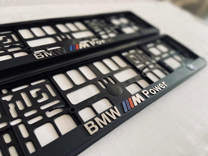BMW number plate surrounds x2. Embossed 3d finished in premium Silver foiling. Suitable for: