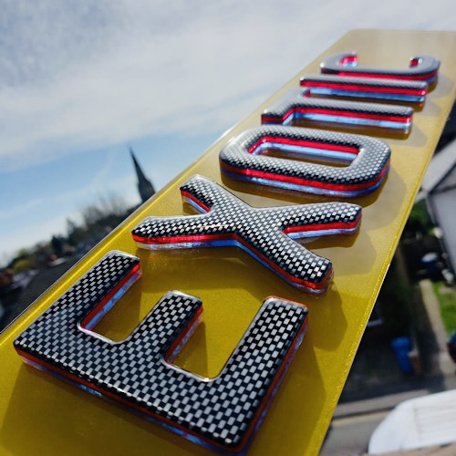 Set of premium 4D Graphite Carbon M-Sport Neon Edition 5MM Replacement Number Plates laser cut to perfection. Manufactured using cutting edge laser technology in house, these are the latest bespoke number plates currently on trend.