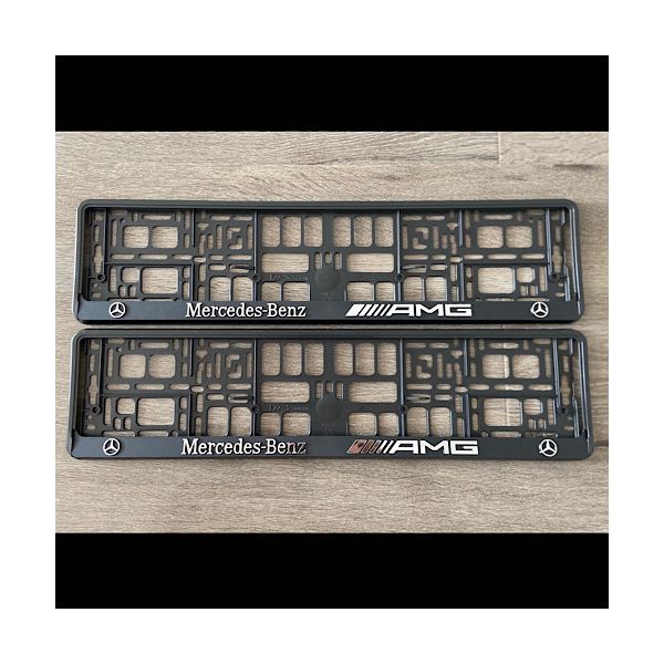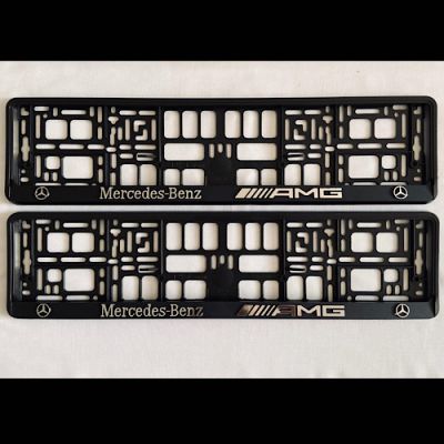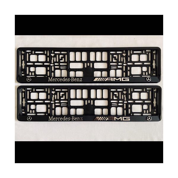 Mercedes Benz AMG Black Embossed Number Plate Holders Licence Plate Surrounds Frame. Set of 2